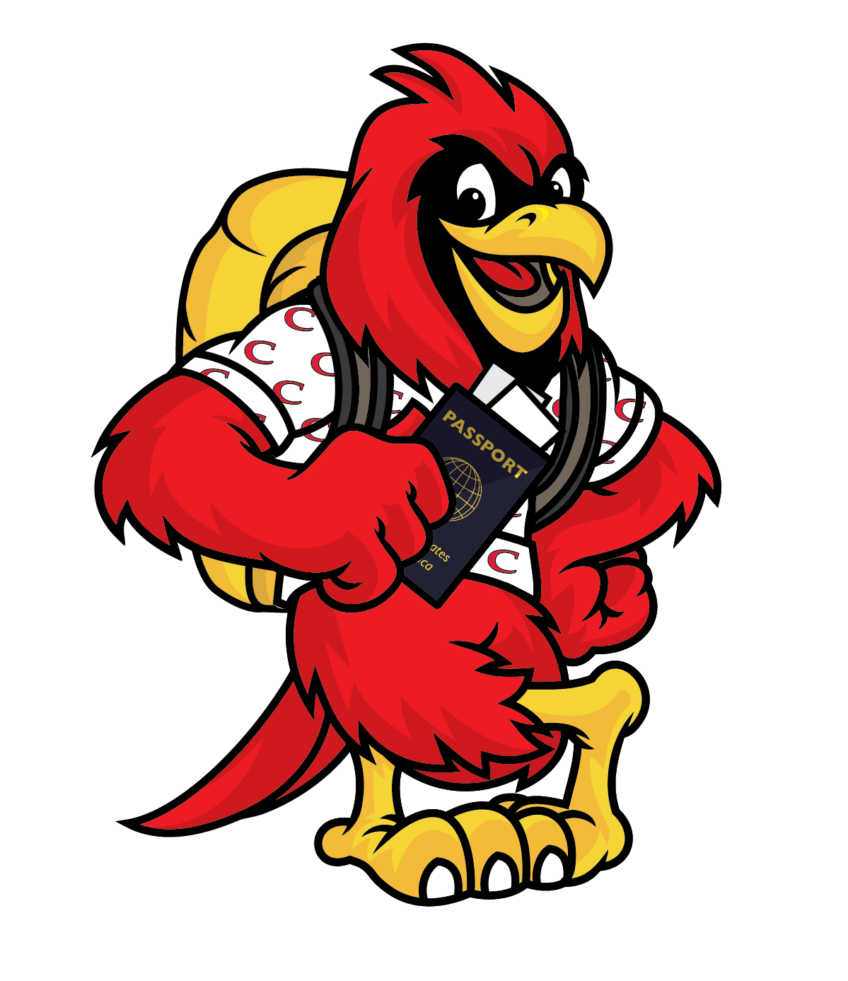 Freddie Falcon and Corky Cardinal, the CU mascots are often redesigned to fit different university departments and offices. I created a Travel Corky and Travel Freddie for the study abroad department. These mascots will be printed on large cardboard cutouts for study abroad fairs.