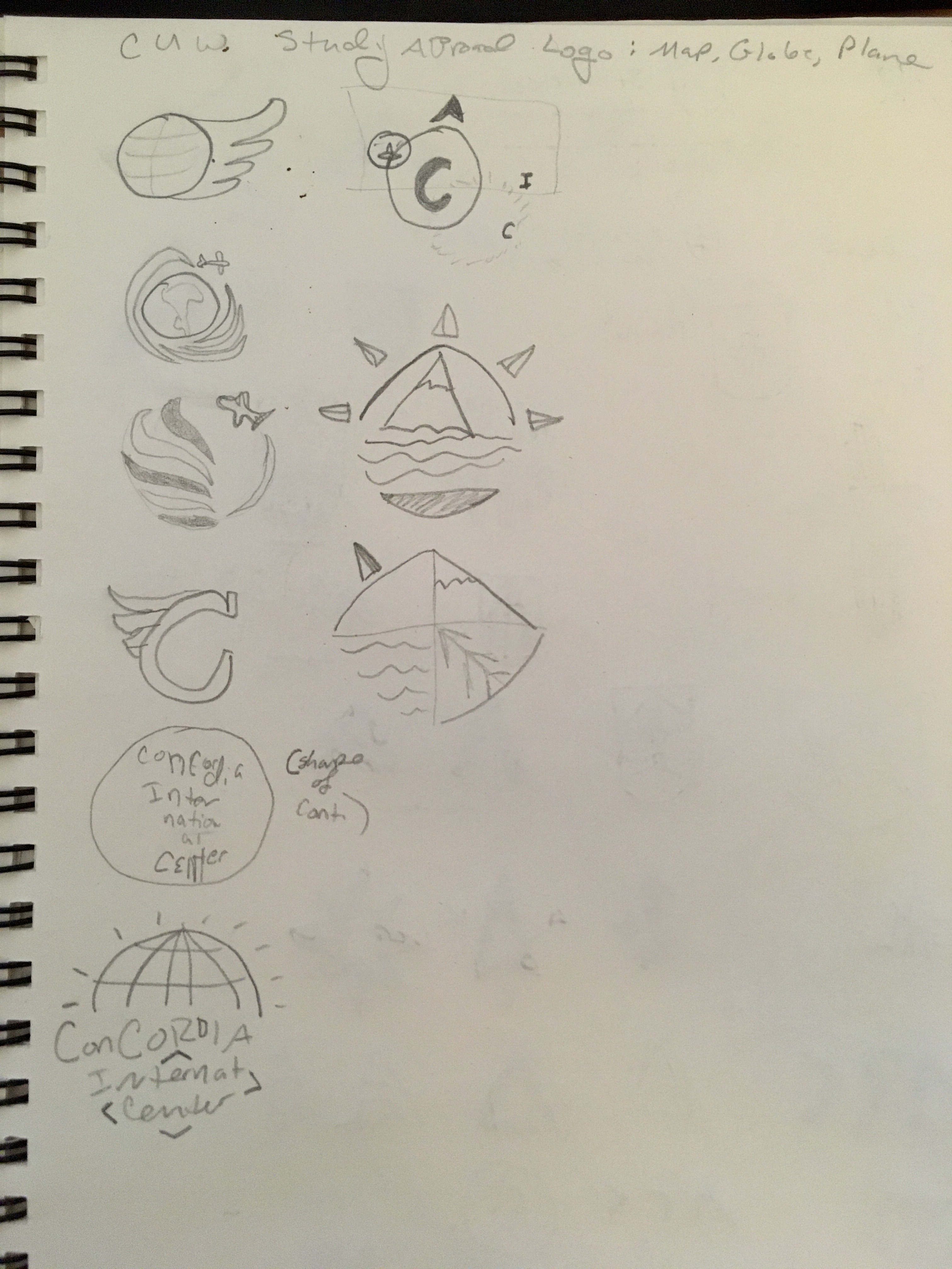 My client wanted a logo that was less corporate than the existing university branding, and that included a map, globe, plane or other travel motif.